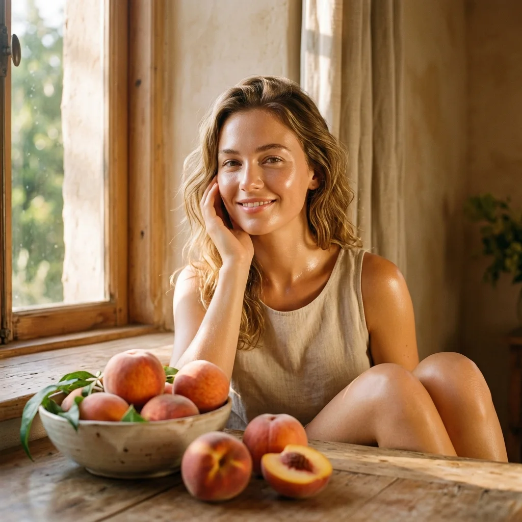 Peaches are rich in Vitamin C, which is the essential co-factor for collagen synthesis. Collagen is the structural protein that keeps skin firm, plump, and youthful. Without enough Vitamin C, collagen production slows — and skin begins to sag and wrinkle faster.