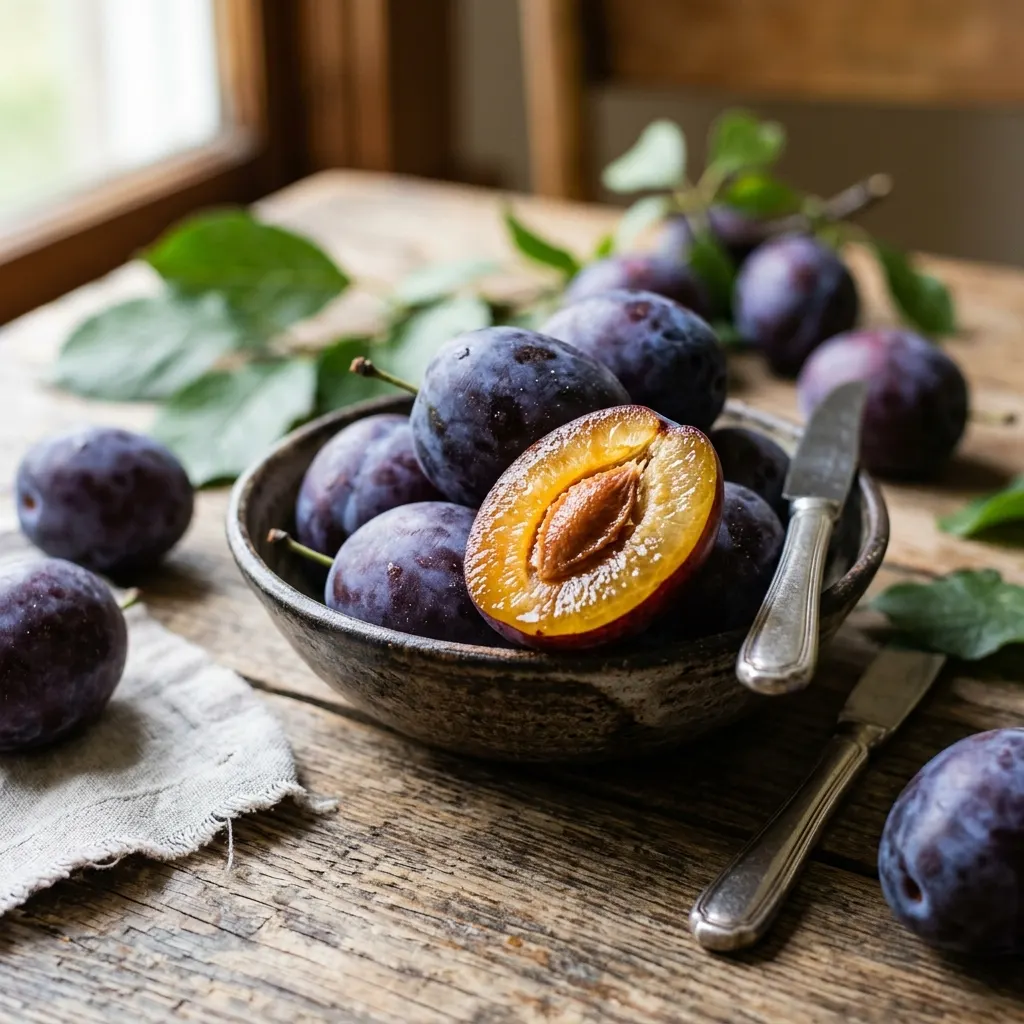 Fresh plums offer similar benefits but in a gentler form. Prunes (dried plums) have a much higher concentration of sorbitol and fiber per gram, which makes them more potent — but also more likely to cause cramping in sensitive individuals. Fresh plums are ideal for daily gut support without the intensity.